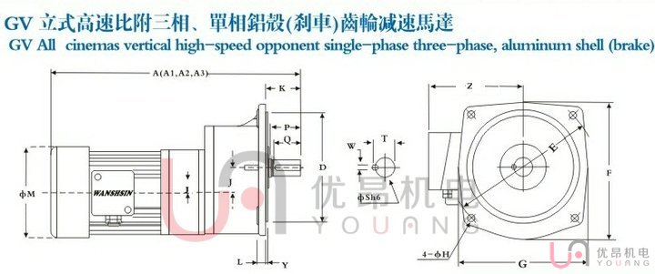 ■尺寸(mm)A1為三相電機尺寸,A2為單相電機尺寸,A3為帶剎車電機尺寸